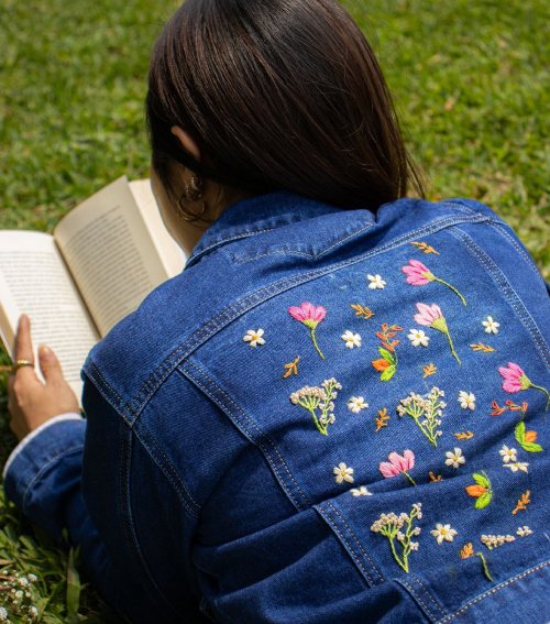 Nuestra colección Flores Bordadas presenta estas casacas denim con diseños únicos y hechas 100% a mano.
